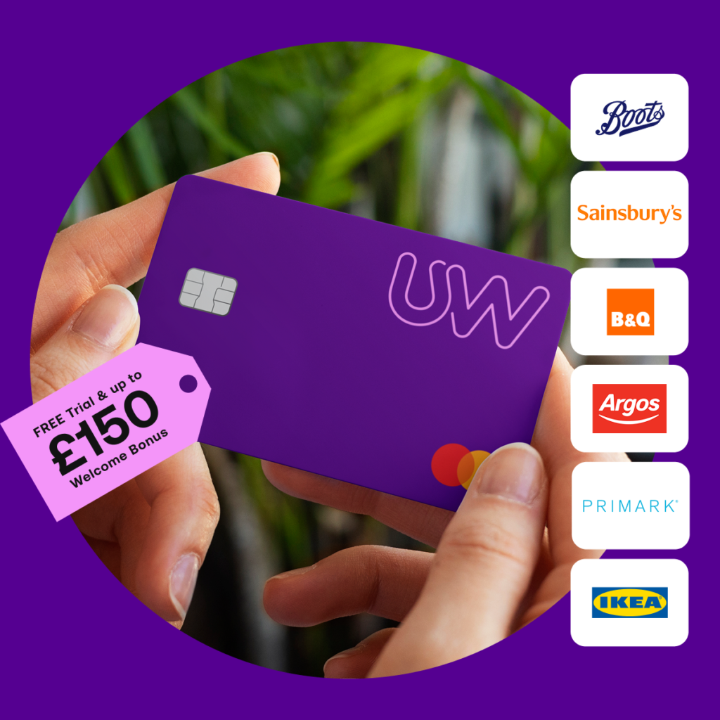 Earn 1% back on everyday purchases and up to 10% at participating retail partners. Plus, new customers can get up to £150 in welcome credit when they start using the Cashback Card.